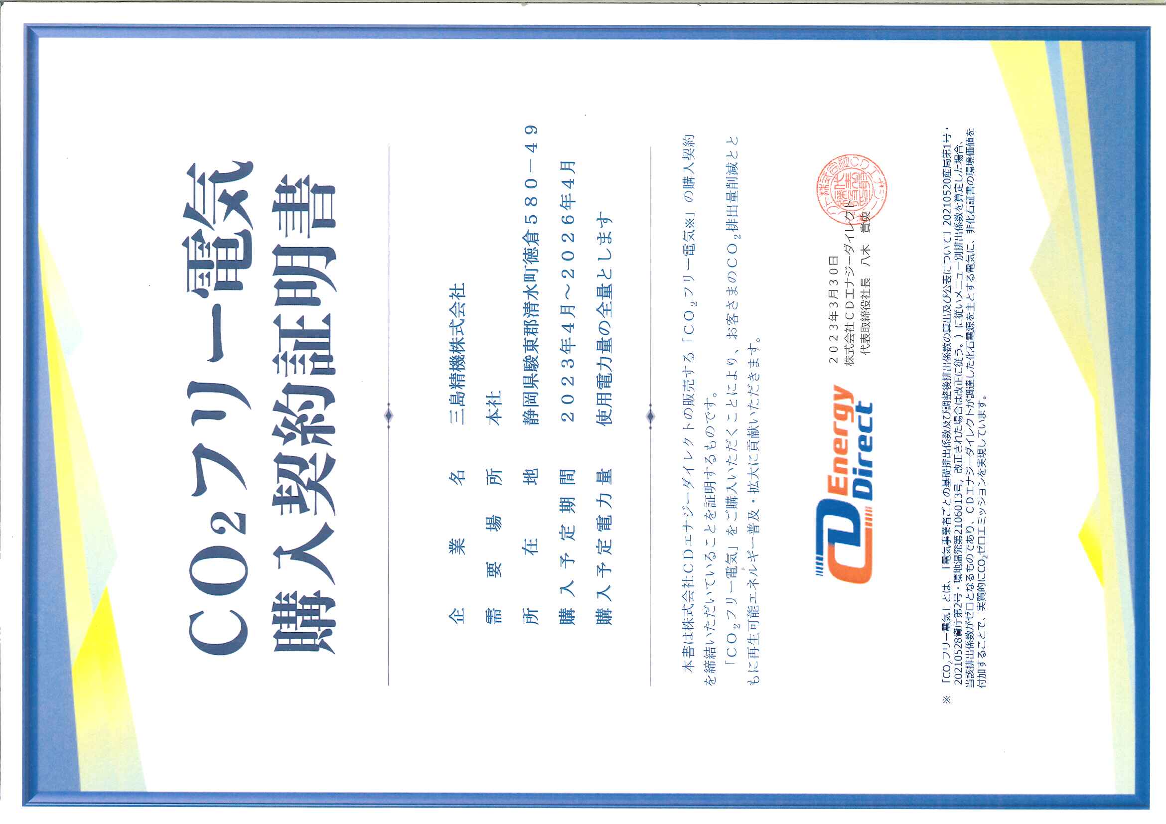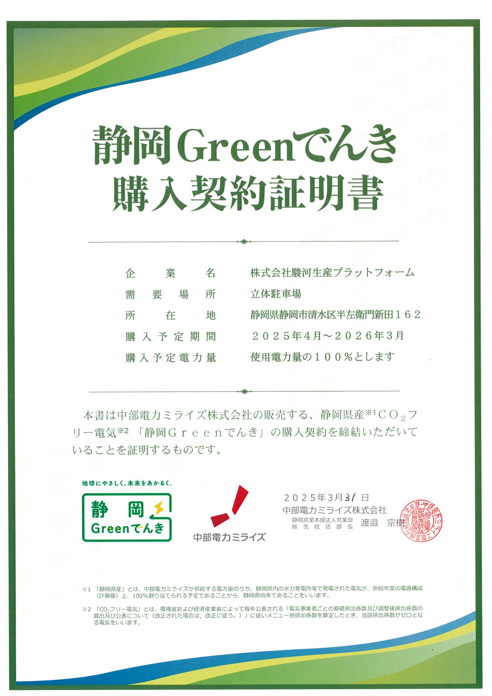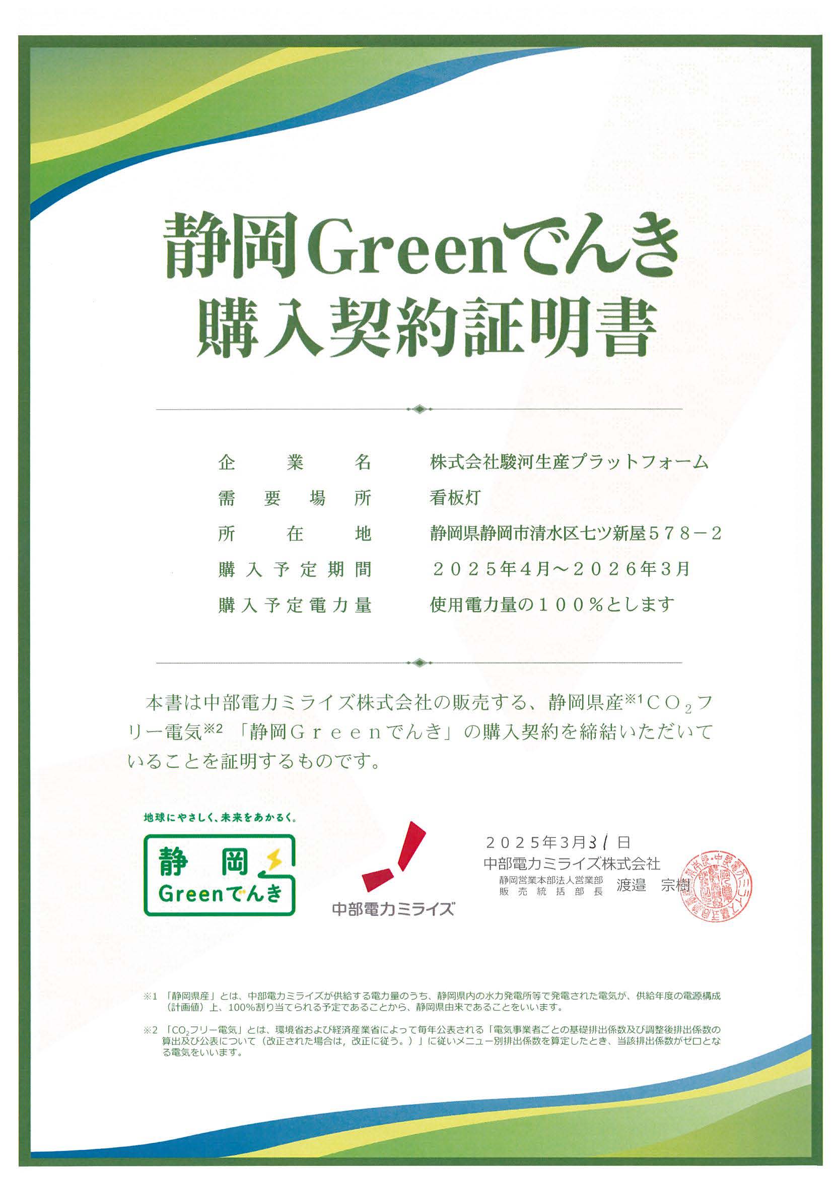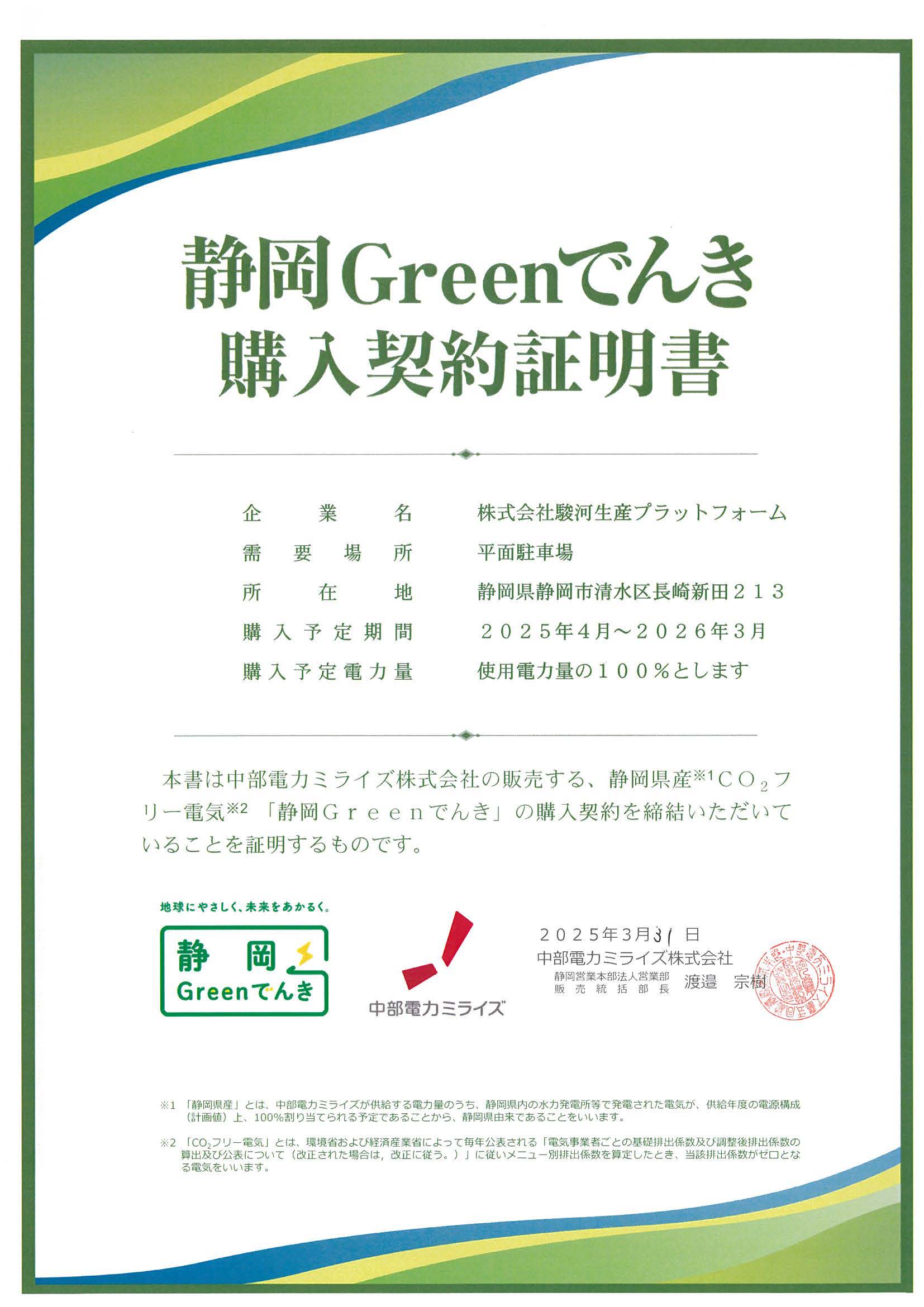 ※ミスミグループホームページの記事はこちら- 当社は静岡県再エネ電気利用促進事業に認定されました