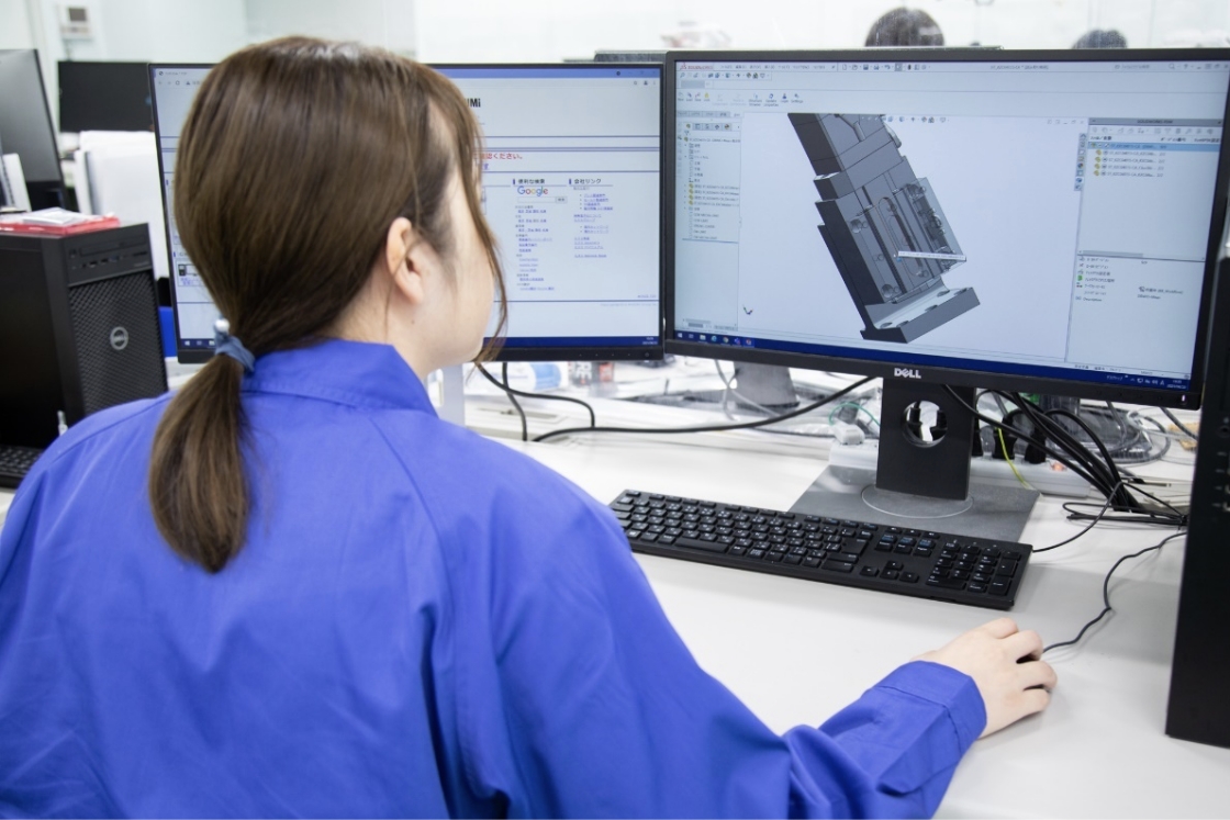 自分で形を決めて一から設計できる会社は、なかなかないと思っています。製品になるまでの過程を見ることができるものづくりは、本当に楽しいですし、やりがいもあります。製品の凄さを知ってもらうためにがんばりたいです。短納期を強みにしているので、開発納期が短い製品も多いですが、そんなときにはチーム全員で協力して進めています。一人で黙々と作業するエンジニアも多いですが、設計は一人でできるものではありません。電気や光学など様々な分野の人たちと相談しながらやらないと進められない仕事が多いので、コミュニケーションはすごく大事だと実感しています。「報告・連絡・相談」の「ほうれんそう」がきちんとできる人。基本的なことですが、会社にとって、チームにとって重要な資質のひとつです。