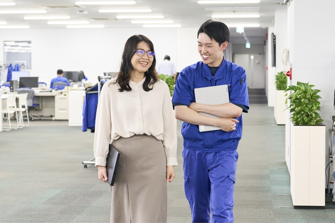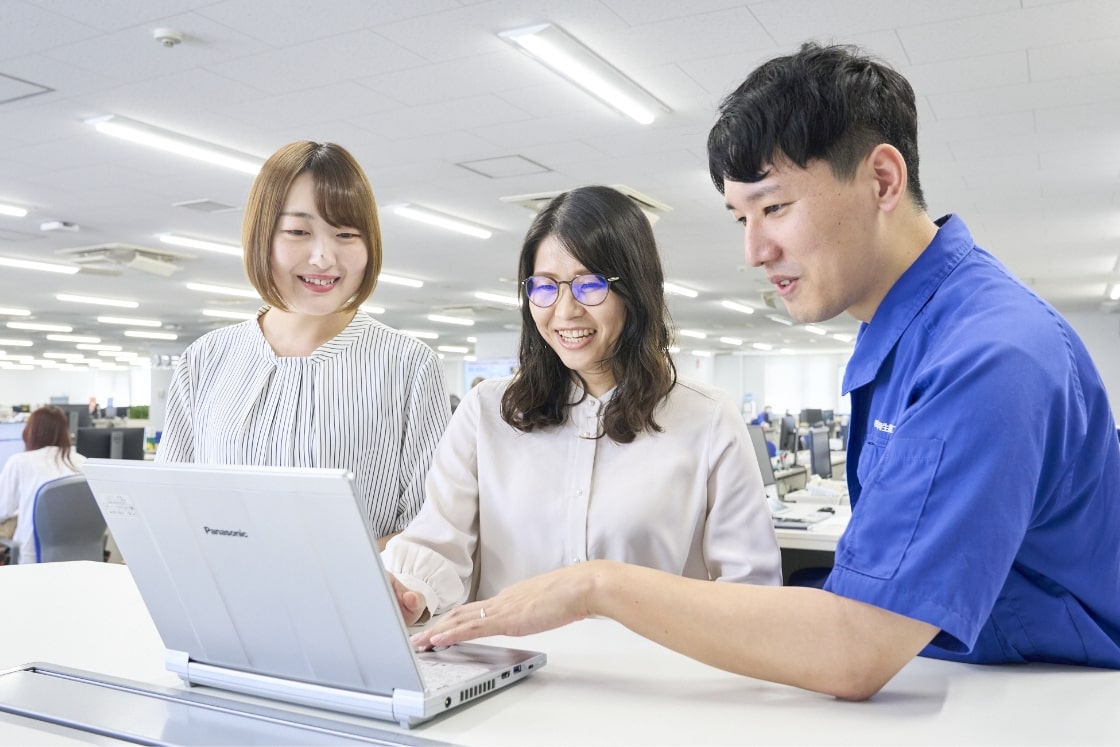 会社全体で、生産においても業務においても「改善」に対する意識が高く、現状に満足せず新しいことに取組む社風です。ものづくりの現場にも文系出身者が担うべき役割はありますが、待ちの姿勢だとなかなかチャンスは巡ってきません。貪欲に「取りに行く」姿勢を持って、専門外のことにも目を向けられる柔軟性を兼ね備えた人が活躍できる会社だと思います。