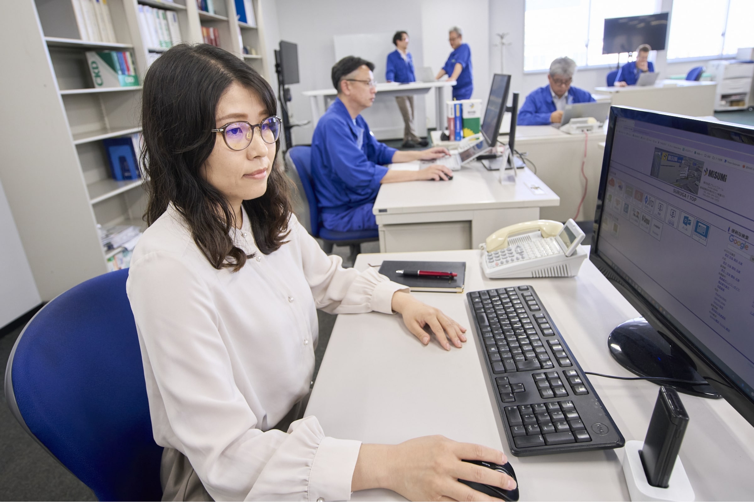 現在は生産企画部に所属し、主に2つの仕事をしています。一つ目は各工場の月次業績管理ですが、もう一つは新製品の立上げプロジェクトマネジメントです。文系出身にとってものづくりの勉強は正直難しいです。設備・工具・鋼材の特性や、生産技術・オペレーションを理解していないと、例えば製造コストの見極めも出来ません。実際に手を動かし加工をすると、ものづくりへの理解が深まり、プロジェクトをリードする上での判断材料も増えます。図面を読むのも最初は戸惑いましたが、今では面白いと感じています。