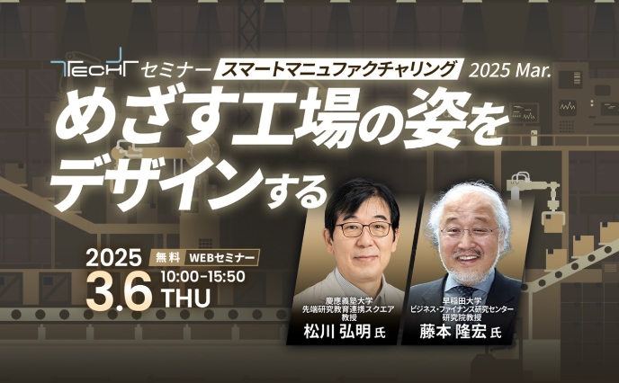 2025.03.06掲載情報2025年03月06日午前10時より公開される、TECH+セミナー スマートマニュファクチャリングに、弊社、代表取締役社長 遠矢 工の講演が放送されます。 -